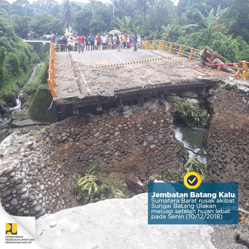 Jembatan tersebut ambruk setelah diterjang air luapan Sungai Batang Ulakan. Hal itu disampaikan Presiden Jokowi dalam akun Facebooknya, Kamis (13/12/2018).