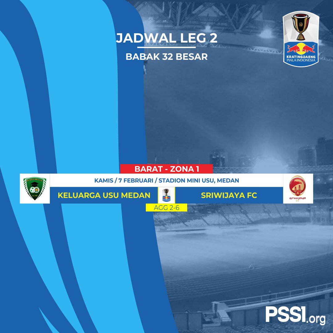Jadwal pertandingan leg kedua Babak 32 Besar Kratingdaeng Piala Indonesia, hari Kamis (7/2). #PSSINow #SepakBolaNusantara #KratingdaengPialaIndonesia