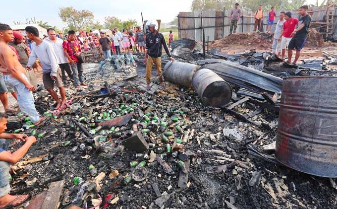 Belum diketahui berapa jumlah gudang barang bekas dan rumah liar yang terbakar dari insiden ini, namun dari pantauan Tribun di lapangan sedikitnya ada belasan lokasi yang terdiri gudang penyimpanan barang bekas dan ruli yang hangus terbakar.