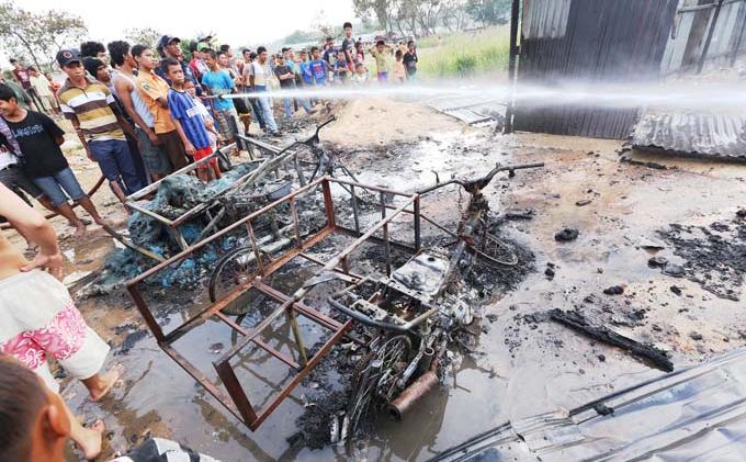 Beruntung warga sekitar yang melihat kejadian ini langsung mengambil tindakan dengan menyiramkan air yang ada secara bergantian dan sebagian warga lainnya memilih untuk merobohkan sebagian gudang barang bekas dengan tujuan agar api tidak menjalar.