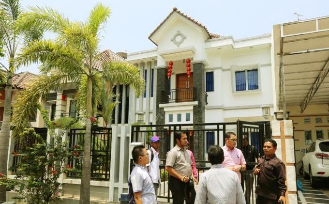 Petugas Direktorat Kriminal Khusus (Direskrimsus) Polda Kepri saat memeriksa kediaman Iwan di Villa Kota Mas Nomor 35, Baloi, Batam, Selasa (25/2/2014) siang. Petugas gagal menggeledah rumah Daftar Pencarian Orang (DPO) Iwan terkait dugaan tindak pencucian uang.