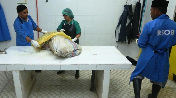 Jenazah dalam karung beras ini sebenarnya sudah ditemukan, Minggu (22/2/2015) sore lalu. Namun belakangan jenazah dalam karung itu hanyut, hingga akhirnya ditemukan kembali, Senin (24/2/2015) paginya.