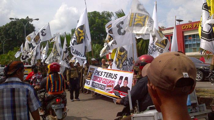 Massa pendukung Soerya Respationo - Anshar Ahmad (SAH), dari PKS yang menamakan diri Pandu Keadilan.