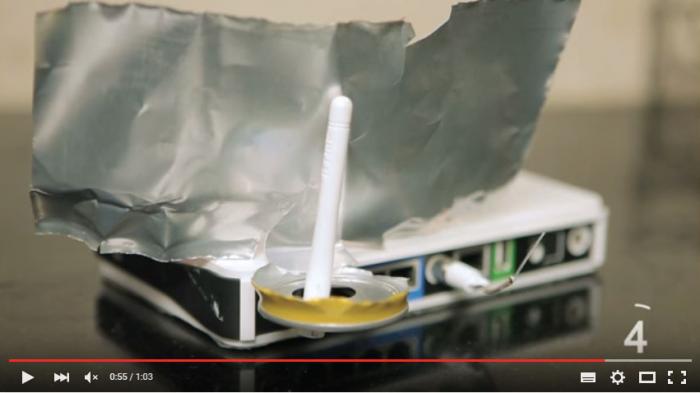 Langkah ini mirip dengan cara untuk mendapatkan gambar yang bagus pada TV, yakni membungkus antena dengan alumunium foil.