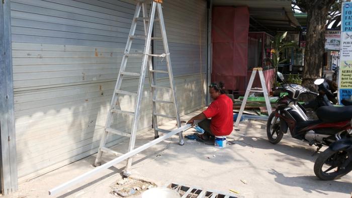 Di luar ruko tempat kerjanya, Mega Legenda Malaka blok C1 itu, ia tetap fokus mengerjakan tugasnya, meski butiran keringat mengucur deras dari dahinya.