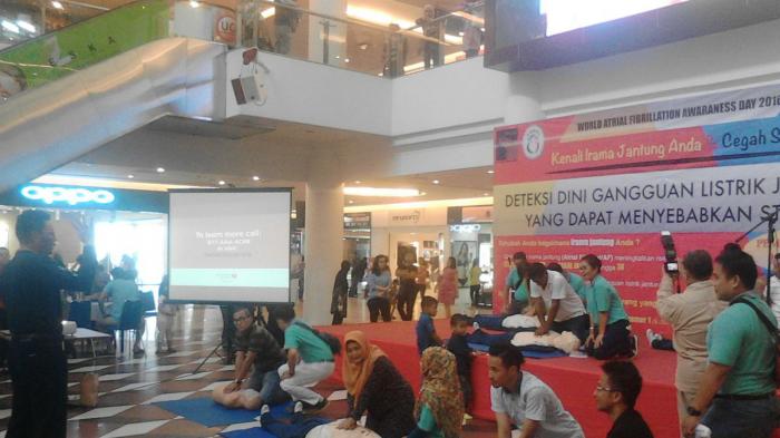 Tajuk sosialisasi ini juga cukup menarik: "Kenali Irama Jantung Anda dan Cegah Jantung" di atrium Mega Mall, Minggu siang (31/7/2016).