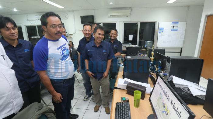 Gubernur dan rombongan juga melihat secara seksama proses uploading berita-berita di portal Tribun Batam.