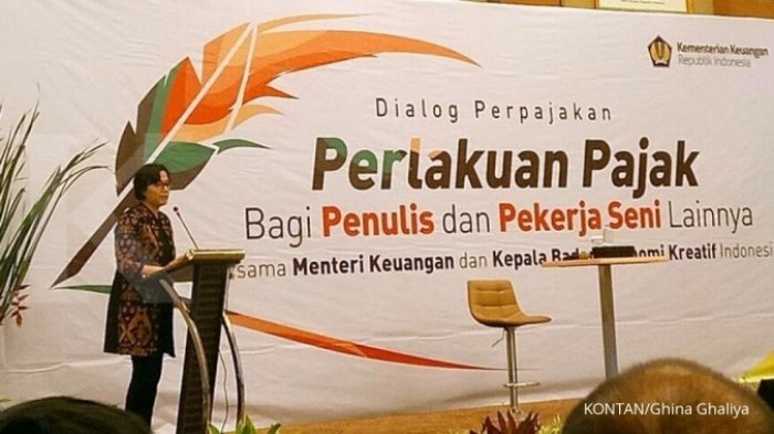 Menteri Keuangan Sri Mulyani Indrawati mengumpulkan 430 pelaku industri kreatif untuk berdialog tentang pajak termasuk cara penghitungan pajak.