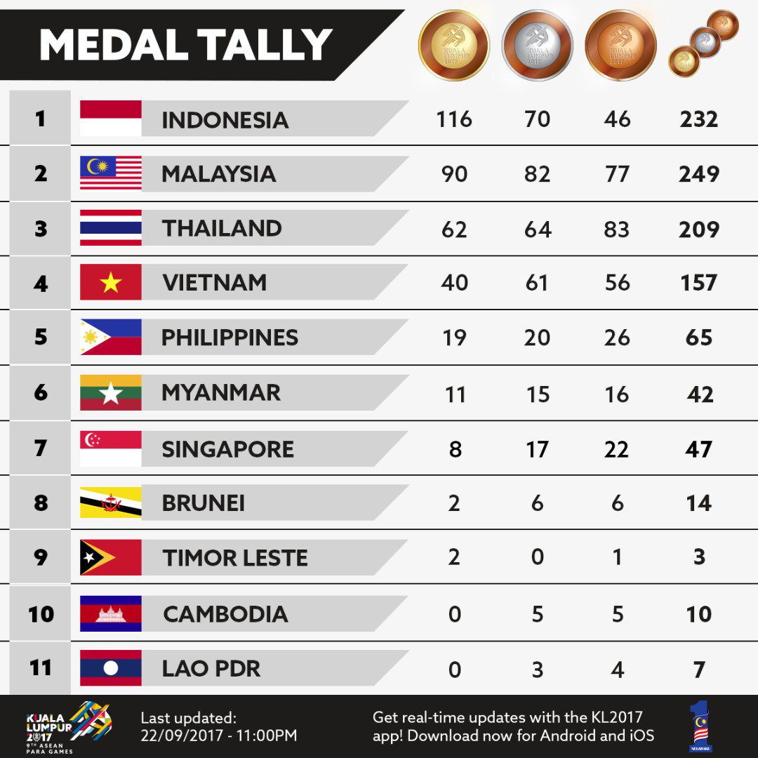 Perolehan medali Indonesia hingga Jumat malam, tak mungkin terkejar oleh kontingen lain, termasuk tuan rumah Malaysia yang menjadi juara umum kedua dalam perhelatan olahraga penyandang disabilitas ini.