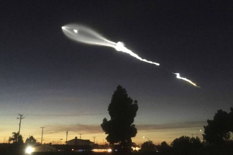 Cahaya aneh itu berasal dari peluncuran roket SpaceX dari pangkalan angkatan udara Vanderberg di California, sebelah utara Los Angeles.