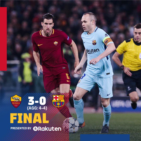 AS Roma secara mengejutkan sukses mengalahkan Barcelona pada laga kedua perempat final Liga Champions dengan skor 3-0 di Stadion Olimpico