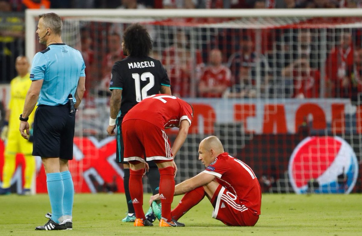 Robben harus digantikan oleh Thiago Alcantara pada menit ke-8 karena mengalami cedera setelah dilanggar oleh Raphael Varane.