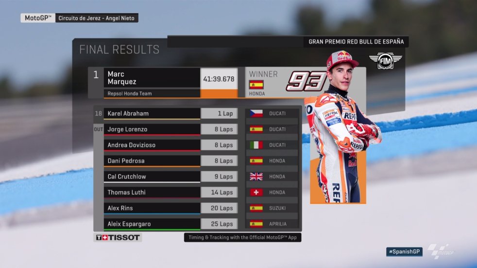 Sedangkan Andrea Iannone yang berhasil finis ketiga pada MotoGP Spanyol 2018 berhasil bertengger pada peringkat empat klasemen.