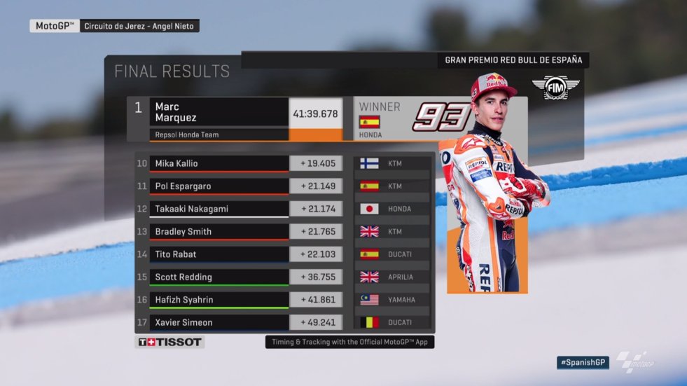 Sementara itu, Johann Zarco (Yamaha Tech3) yang finis urutan dua pada MotoGP Spanyol 2018 berhasil naik ke peringkat dua klasemen pebalap MotoGP dengan raihan 58 poin.