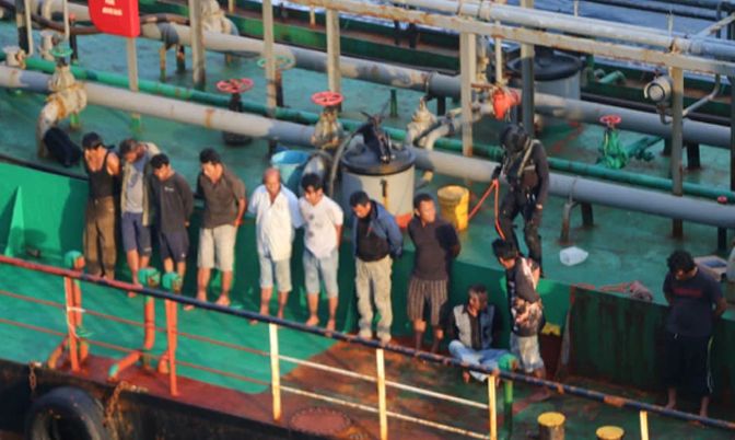 Sebelumnya, Komandan Lanal Batam Kolonel Laut (E) Iwan Setiawan, SE, menjelaskan penangkapan itu dilakukan berdasarkan adanya informasi Intelijen dari Agensi Penguatkuasaan Maritim Malaysia (APMM) terkait kejadian perompakan terhadap Kapal MT Lee Boo di Perairan Barat Pulau Aur Malaysia pada koordinat 02 19’ 089’’ LU-104 15’ 144 BT yang terjadi pada Jumat dinihari (1/6/2018).