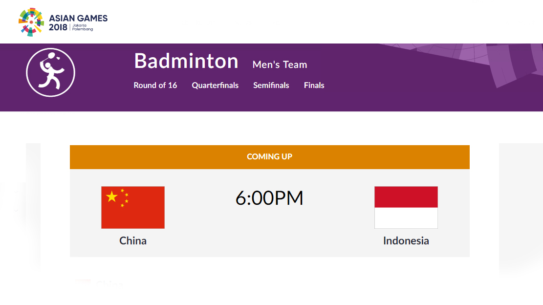 TV Live Streaming Final Bulutangkis Asian GAmes Indonesia vs China