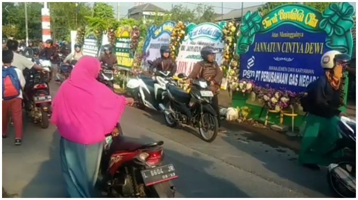 Dalam video yang diunggah, terlihat semua orang yang mengendarai sepeda motor, turun dari motor dan menuntun motor mereka ketika melewati kediaman alm Jannatun Chintya Dewi.