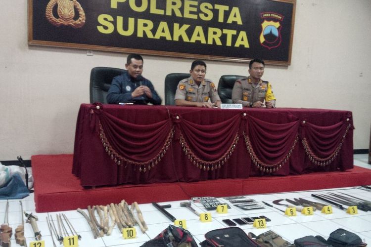 "Kelompok ini kami tangkap di Pasar Klitikan, Semanggi. Kami juga menyita barang bukti yang mereka gunakan untuk membuat keresahan di masyarakat," kata Ribut dalam pers rilis di Mapolresta Surakarta, Solo, Jawa Tengah, Sabtu malam.