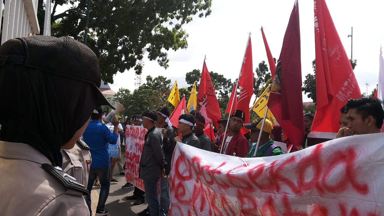 Protes kebijakan pungutan pada ASN untuk membantuk koruptor, puluhan mahasiswa yang tergabung dalam sejumlah aliansi mahasiswa menggelar unjuk rasa.