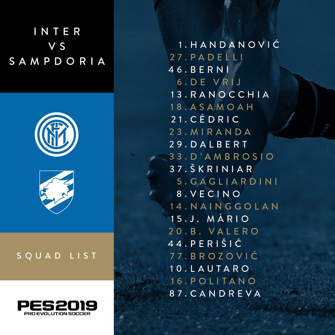 Pada pertandingan ini Mauro Icardi kembali tidak dilibatkan setelah sebelumnya juga tidak dibawa saat Inter bermain di Liga Europa