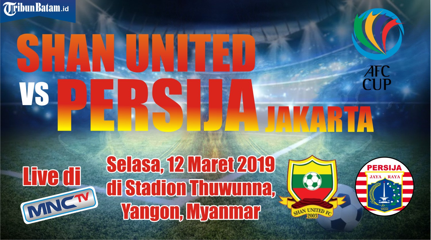 TRIBUNBATAM.id, YANGON - Matchday kedua AFC Cup 2019, Shan United akan menjamu Persija Jakarta, Selasa (12/3/2019) sore.
