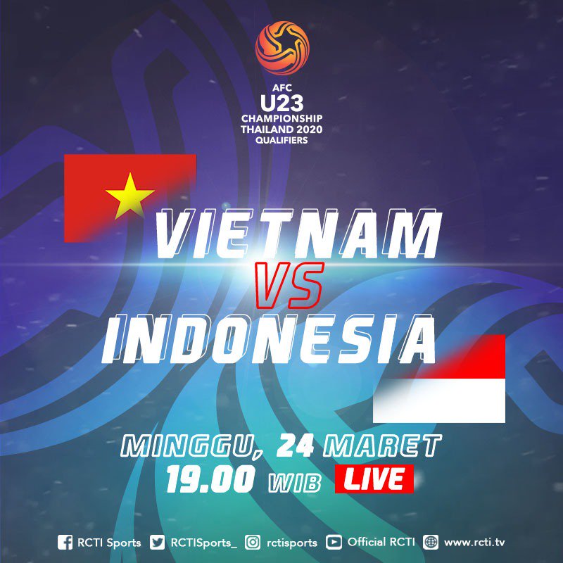Live streaming timnas U-23 Indonesia melawan Vietnamdisiarkan secara langsung oleh RCTI dari Stadion Nasional My Dinh, Hanoi, Vietnam