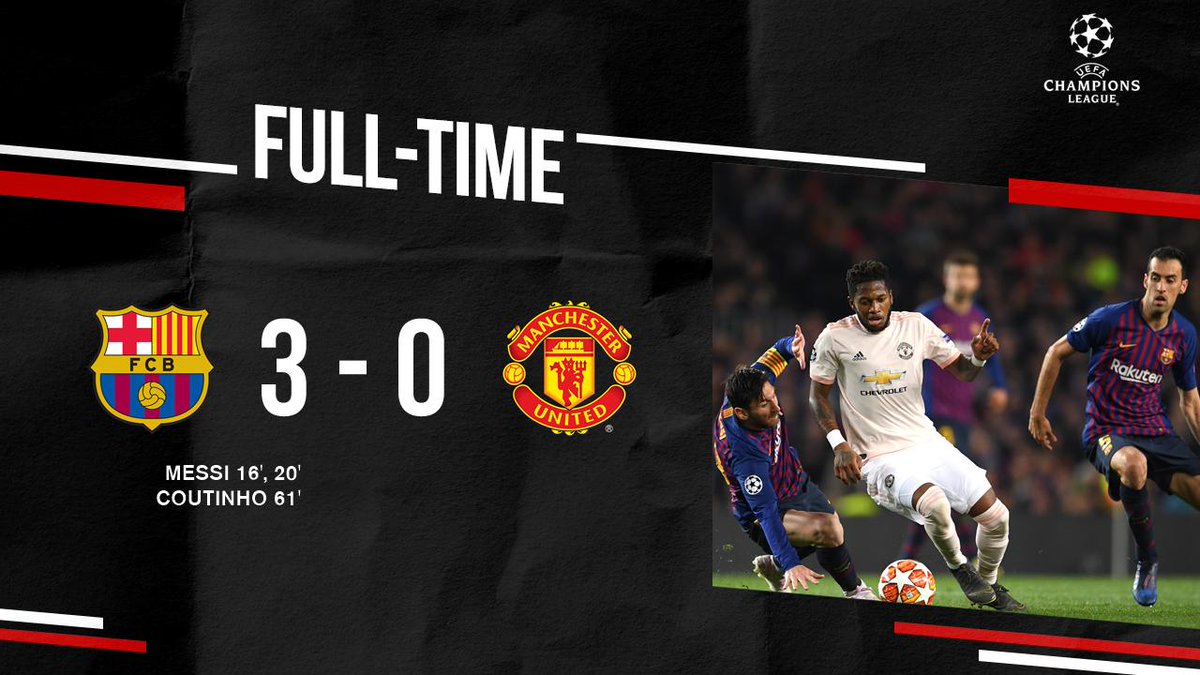 FC Barcelona 3-0 (ag. 4-0) Manchester United (Lionel Messi 16', 20', Philppe Coutinho 61'; -)