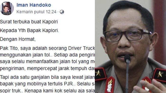 Sebuah surat terbuka seorang warganet yang mengaku sebagai sopir truk untuk Kapolri Jenderal Tito Karnavian viral di Facebook.