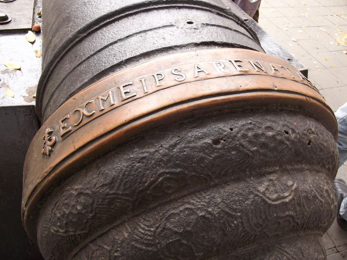 Pada salah satu sisinya, terdapat tulisan dalam bahasa Latin yang berbunyi: Ex me Ipsa renata Sum, yang artinya kurang lebih "dari saya sendiri aku dilahirkan kembali". Si Jagur memang diperkirakan berasal dari 16 meriam kecil yang dilebur menjadi satu.