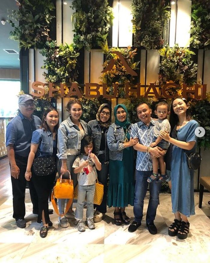 Tidak sendiri, Ia berpose bersama dengan keluarganya.