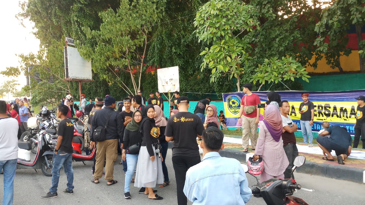 Mereka awalnya menutup gerbang Polres Tanjungpinang.
