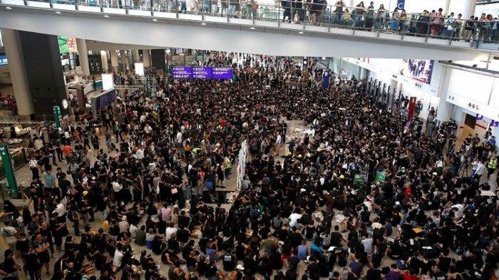 TRIBUNBATAM.id - Menyerukan "Bebaskan Hongkong", lebih dari 1.000 orang demonstaran berkumpul di Bandara Internasional Hongkong untuk menuntut keadilan mereka.