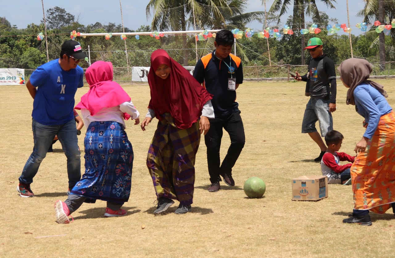 Bupati Bintan Apri Sujadi membuka sepak bola emak-emak pakai sarung di Kelurahan Gunung Lengkuas, Kabupaten Bintan, Provinsi Kepri, Sabtu (17/8/2019).