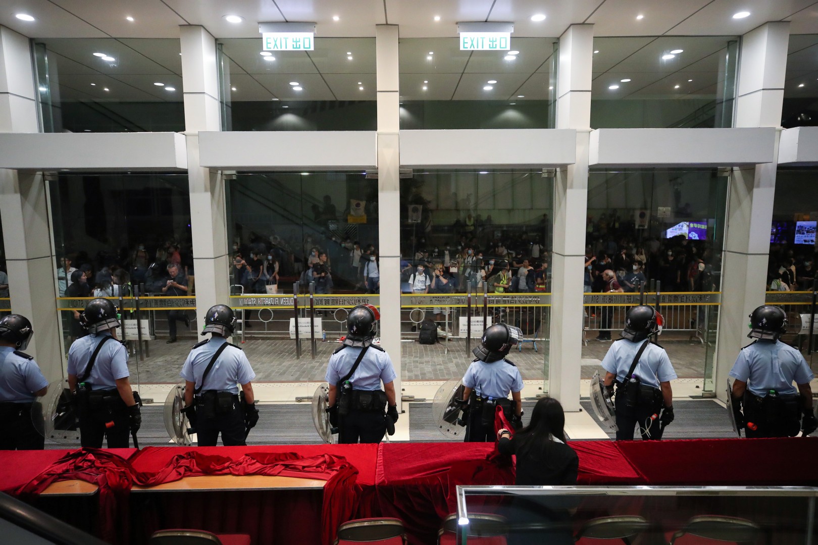 Di tengah dialog, ribuan massa mengepung stadion dan Carrie Lam kemudian meninggalkan arena pertemuan. Namun, stadion dikepung hingga tengah malam