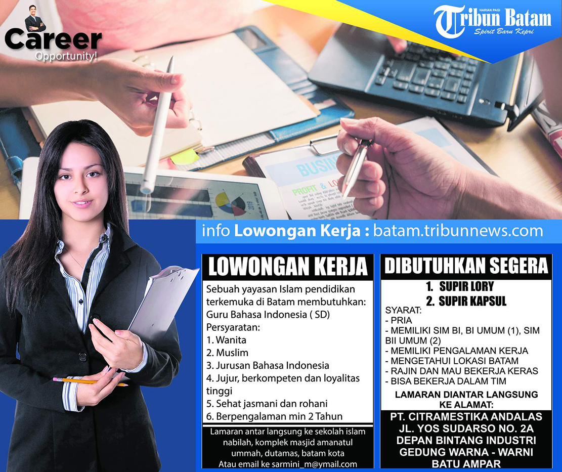 TRIBUNBATAM.id - Hari ini Sabtu 28 September 2019 ada beberapa lowongan kerja yang dapat disimak.