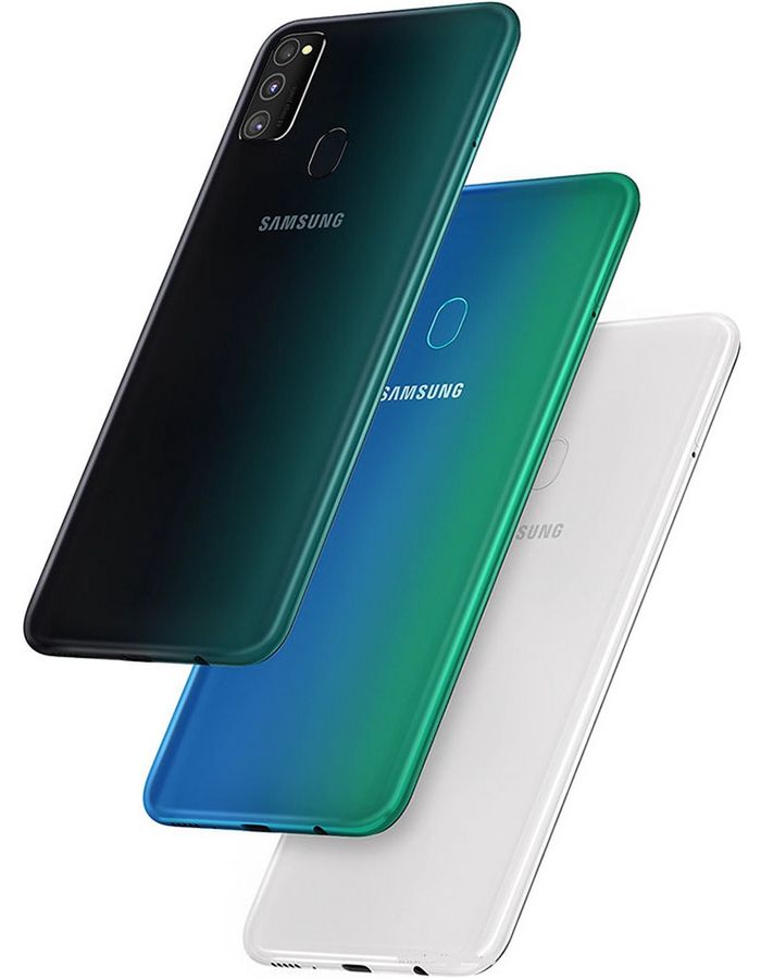 Galaxy M30s memiliki tiga pilihan warna yakni Black, Blue, dan White.