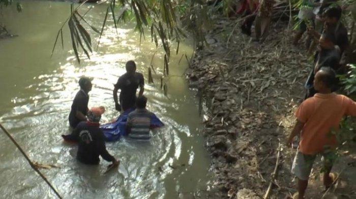 Nursodik dan Sukirno, korban, ditemukan tak bernyawa di sungai Desa Bumi Rahayu.