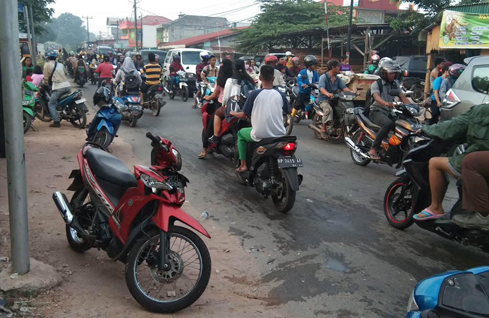 "Woi mau pergi ke sekolah ni, udah mau terlambat," kata beberapa pengendara lainnya. (Tribunbatam.id/bereslumbantobing)