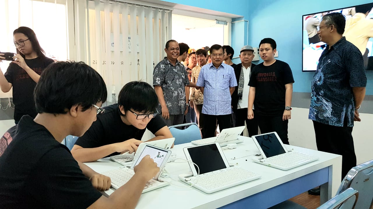 Usai membuka Pangudi Luhur Karnival, JK menyempatkan diri meninjau beberapa fasilitas sekolah diantaranya ruang belajar siswa SMA Pangudi Luhur.
