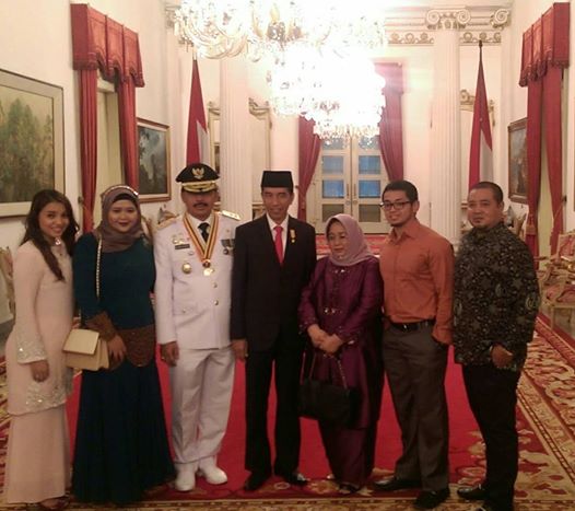 DOKUMEN - Keluarga Gubernur Kepri Dr H Nurdin Basirun dan keluarga berfose bersama Presiden Joko Widodo di Istana Negara, 12 Februari 2916, usai pelantikan jadi Gubernur Kepri menggantikan almarhum Muhammad Sani.