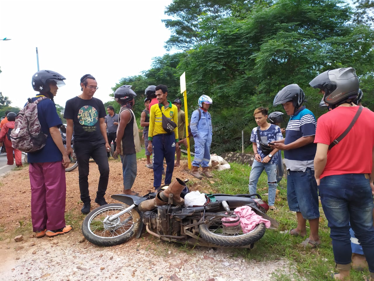 "Sepertinya kecelakaan tunggal. Karena motor itu ada seperti lilitan di bagian ban belakang," ujar salah satu warga yang berada di lokasi.
