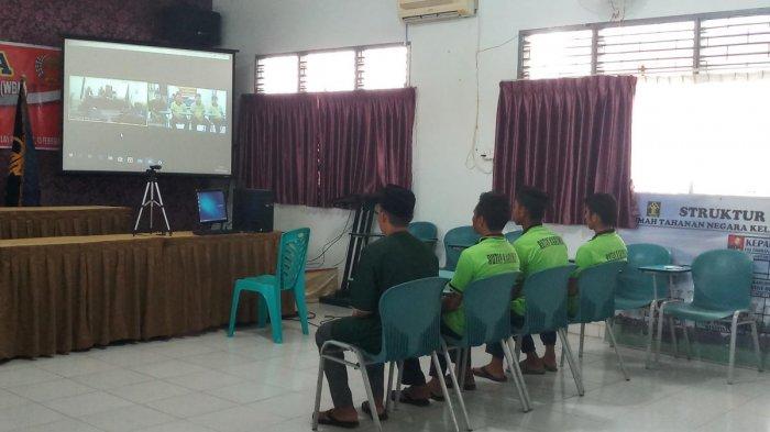 Ruang sidang dihubungkan dengan Rutan Karimun menggunakan aplikasi zoom saat teleconference.