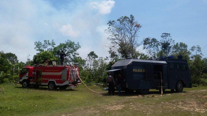 Mobil Water Cannon Polres Bintan Dikerahkan Bantu Padamkan Api di Lahan Gambut Desa Bintan Buyu