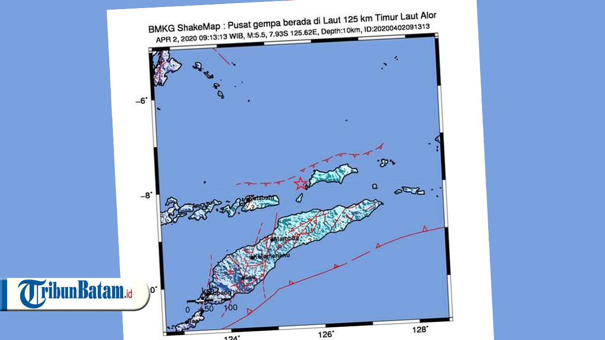 TRIBUNBATAM.id, KUPANG - Wilayah Kabupaten Alor, Nusa Tenggara Timur (NTT) diguncang gempa bumi dengan magnitudo 5,5, Kamis (2/4/2020) pagi.