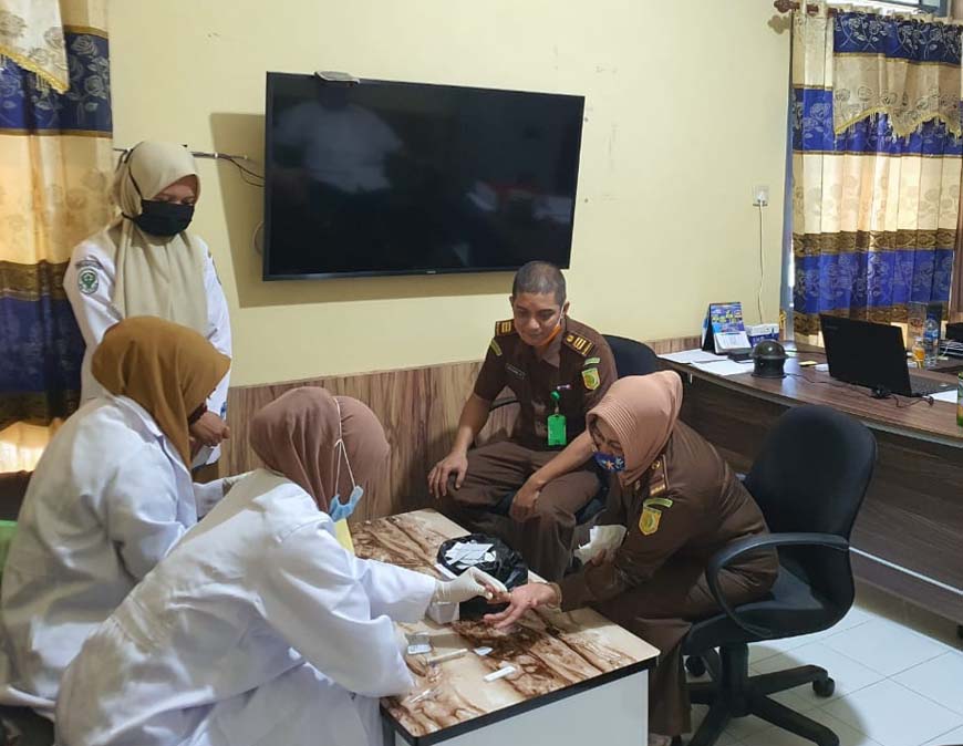 Cabang Kejaksaan Negeri (Cabjari) Natuna di Tarempa melakukan pemeriksaan kesehatan terhadap seluruh tenaga pegawai dan honorer Cabjari Tarempa.