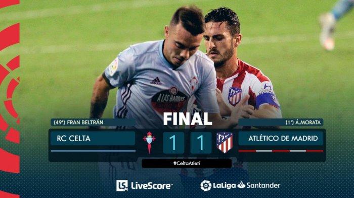 Atletico tetap di peringkat 3 klasemen Liga Spanyol, dengan 63. Sementara bagi Celta Vigo tambahan 1 angka naik ke peringkat 15.