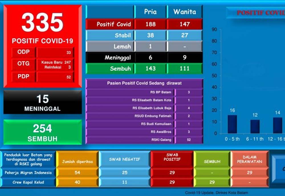 Dengan penambahan tiga kasus baru, maka jumlah kasus Corona di Batam mencapai 335 orang.