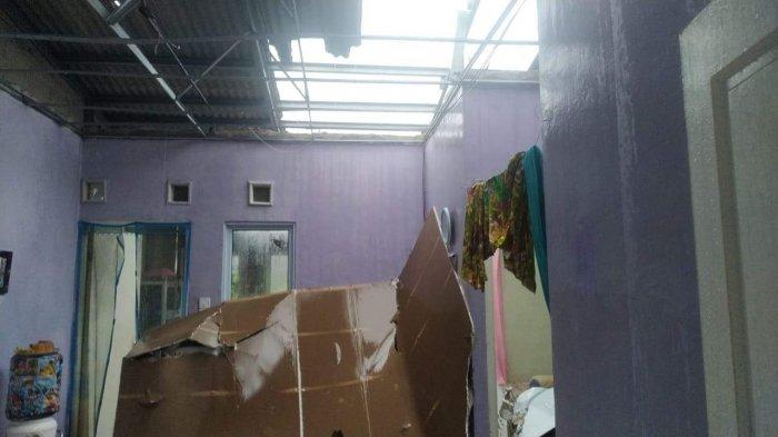 Akibat angin kencang bertiup tak terkendali, sejumlah atap rumah warga pun terangkat dan terbawa oleh puting beliung.
