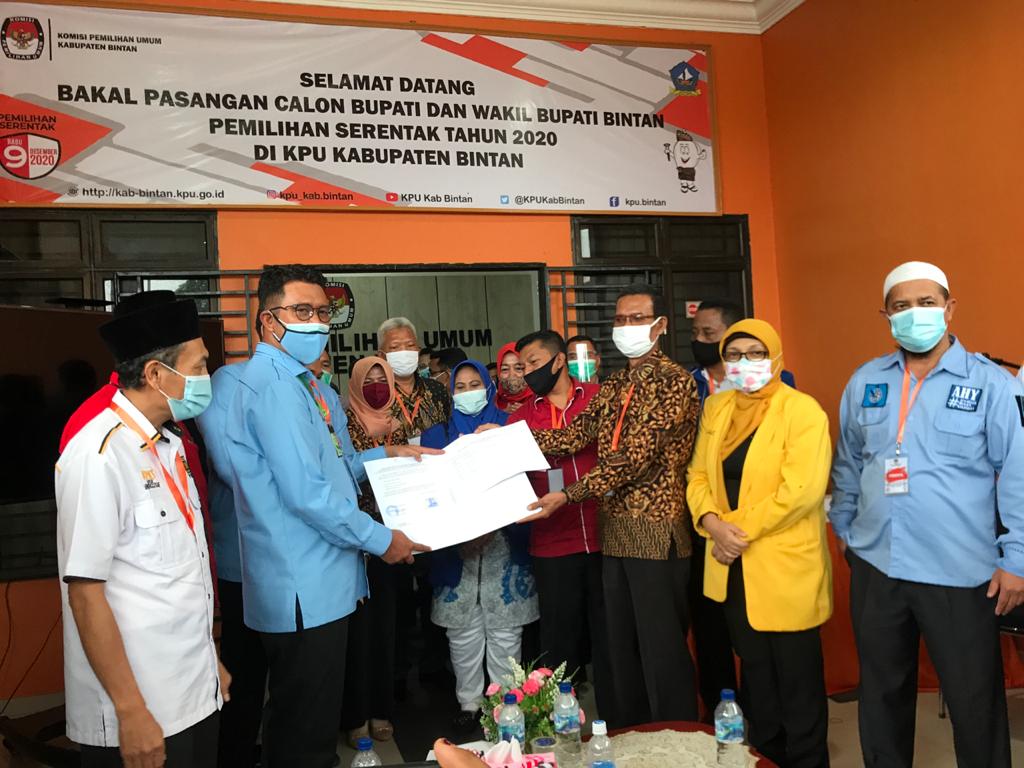 TRIBUNBINTAN.com, BINTAN - Setelah menunggu beberapa jam, berkas administrasi bakal pasangan calon (bapaslon) Apri Sujadi dan Roby Kurniawan untuk maju di Pemilihan Kepala Daerah (Pilkada) Serentak 2020, akhirnya diterima Komisi Pemilihan Umum (KPU) Kabupaten Bintan.