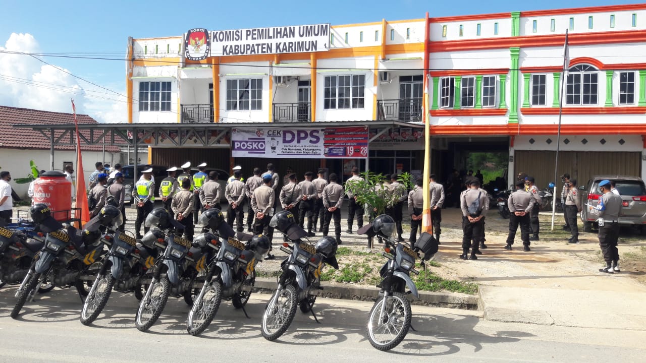 Sebelum hari H, Polres Karimun menggelar apel kesiapan pengamanan. Apel dilaksanakan di depan Kantor KPU Kabupaten Karimun, Rabu (23/9/2020).